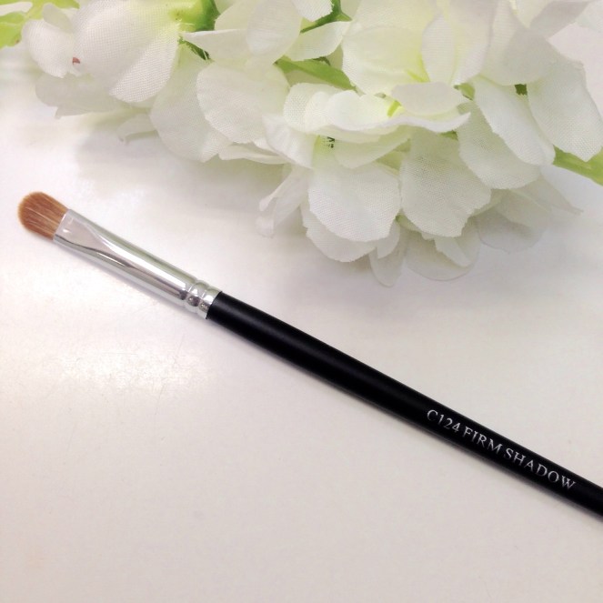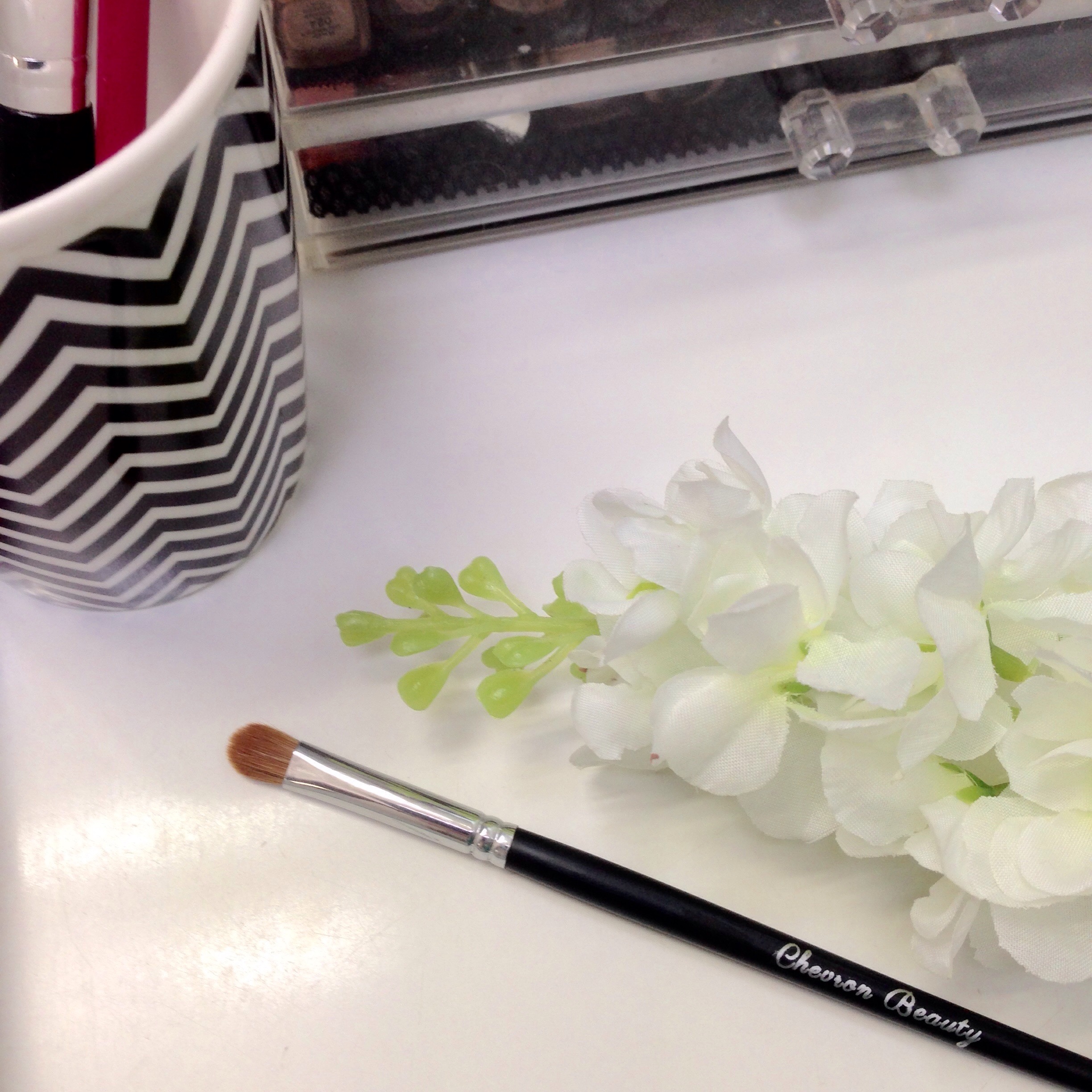 I was lucky enough to be sent the Firm shadow brush as a surprise in my package. With a matte black handle and silver ‘Chevron beauty’ wording, it looked very professional. The bristles were soft but firm and golden brown in colour.