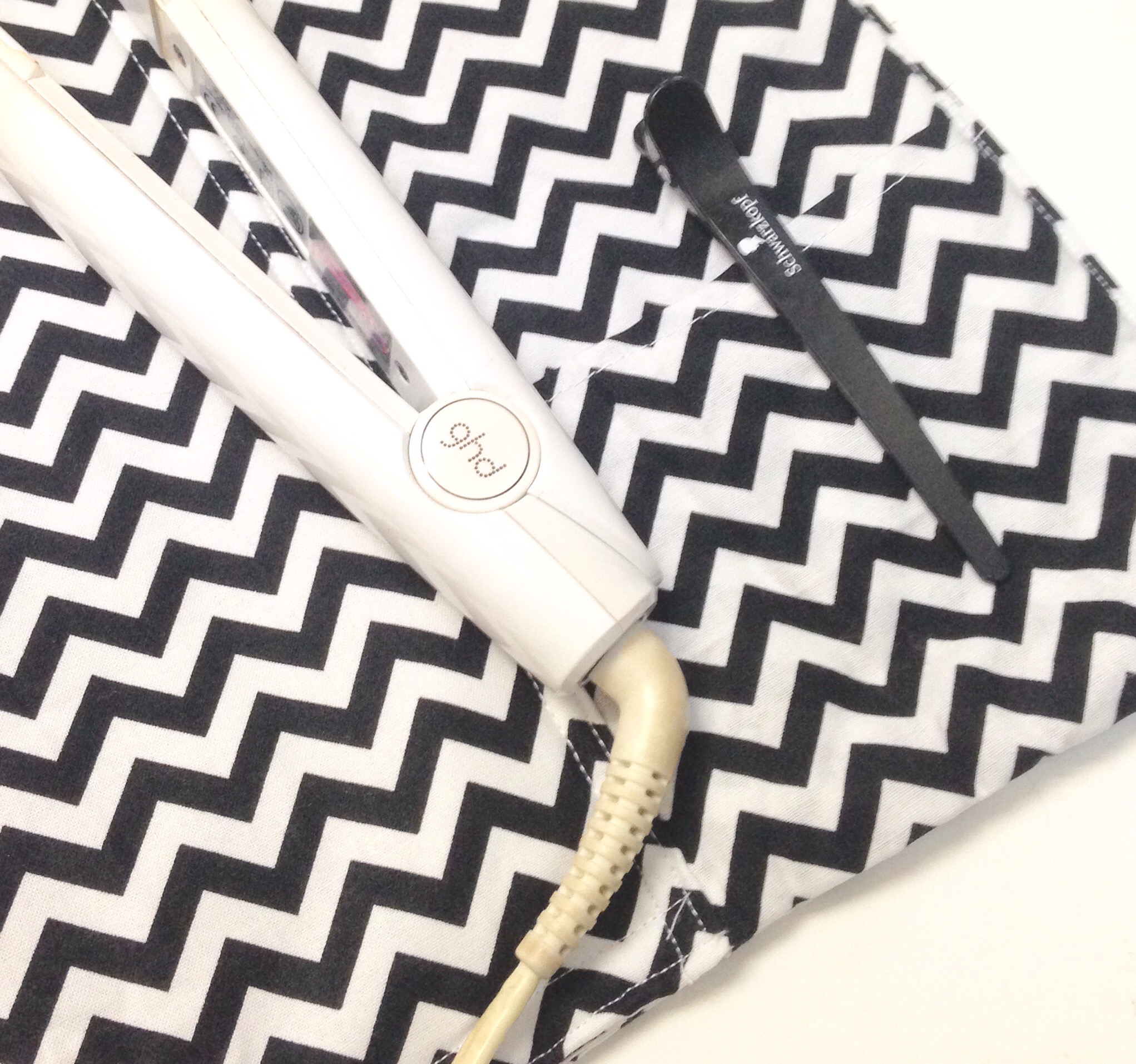Like the brush rolls these are available in different colours and designs. Black Chevron being my print of choice once again! I couldn’t wait to get rid of my nasty felt like ghd pouch and give this baby a go.