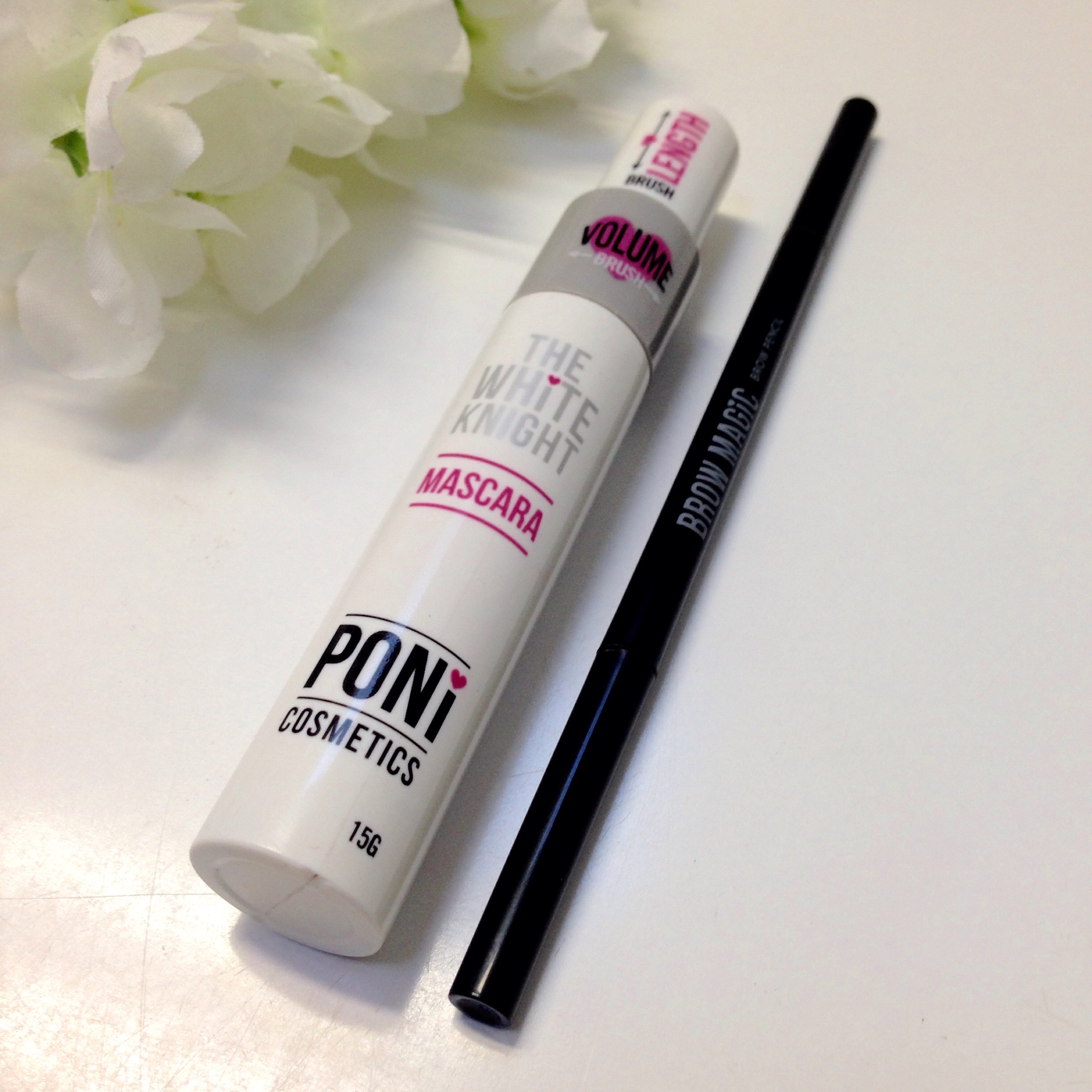 Today I will be reviewing their famous WHITE KNIGHT MASCARA and BROW MAGIC PENCIL. If like me your a sucker for pretty packaging you won’t be disappointed. Not only are PONI COSMETICS super cute so is the parcel they are packed in!
