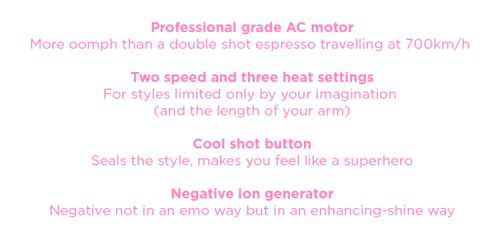 Curious about my super cute hair dryer? … It’s the new look delightfulness dryer by Curious Grace! RRP $99.95 (Also available in black and white) hairhousewarehouse.com.au