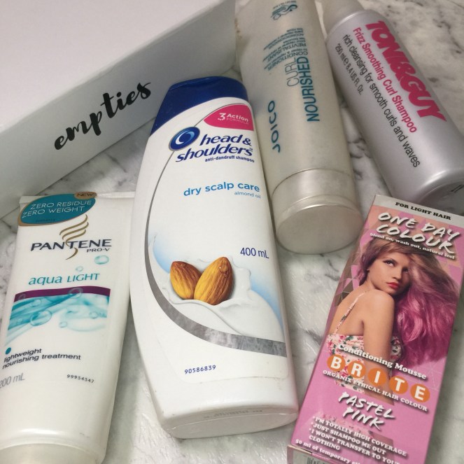 Back in the day I used to go through so many hair products but now they last a little longer as I only wash my hair about once or twice a week. I recently tried Head & Shoulders And was really impressed with the results. Not only did it smell amazing but it made my hair feel so soft and lightweight. The Pantene Treatment was ok but not that fantastic, it kind of just seemed like a regular Conditioner not a treatment. (I’d much prefer to use a hair mask.) Both the Joico and Toni & Guy products which are made for curly hair were great. They were thick and helped to define curls well and reduce frizz. Over the years I’ve dyed my hair quite a few times but had never tried a one day hair colour before. This light pink hair mousse colour was terrible! It was super sticky and it didn’t dry properly on my hair. It caused my hair to stick together in knots and it wouldn’t even brush through. I think if I put paint in my hair it would have worked better lol. This went straight in the bin!