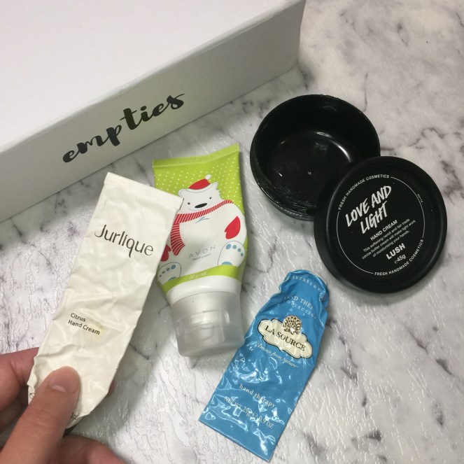 I loved the thickness and richness of the Jurlique and Crabtree & Evelyn Hand creams and found that they kept hands moisturised for longer than other cheaper brands I’ve used. For the price the Avon one is good and had a nice fresh cucumber smell. My favourite would have to be the Lush love and light hand cream it had a really unique scent and because it wasn’t too thick I could also use it on my face. It was perfect to have sitting on my bedside table and am keen to try a new one from Lush soon. Let me know if you have any suggestions.